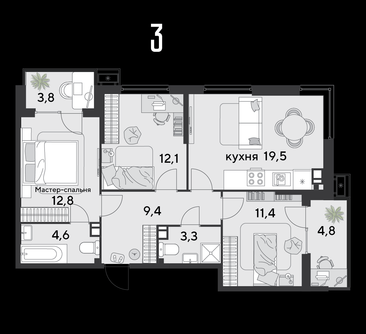 Продается 3-х комн. новостройка, 82 кв.м., 9/18 эт