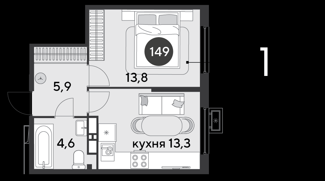 Продается однокомнатная новостройка, 38 кв.м., 14/18 эт