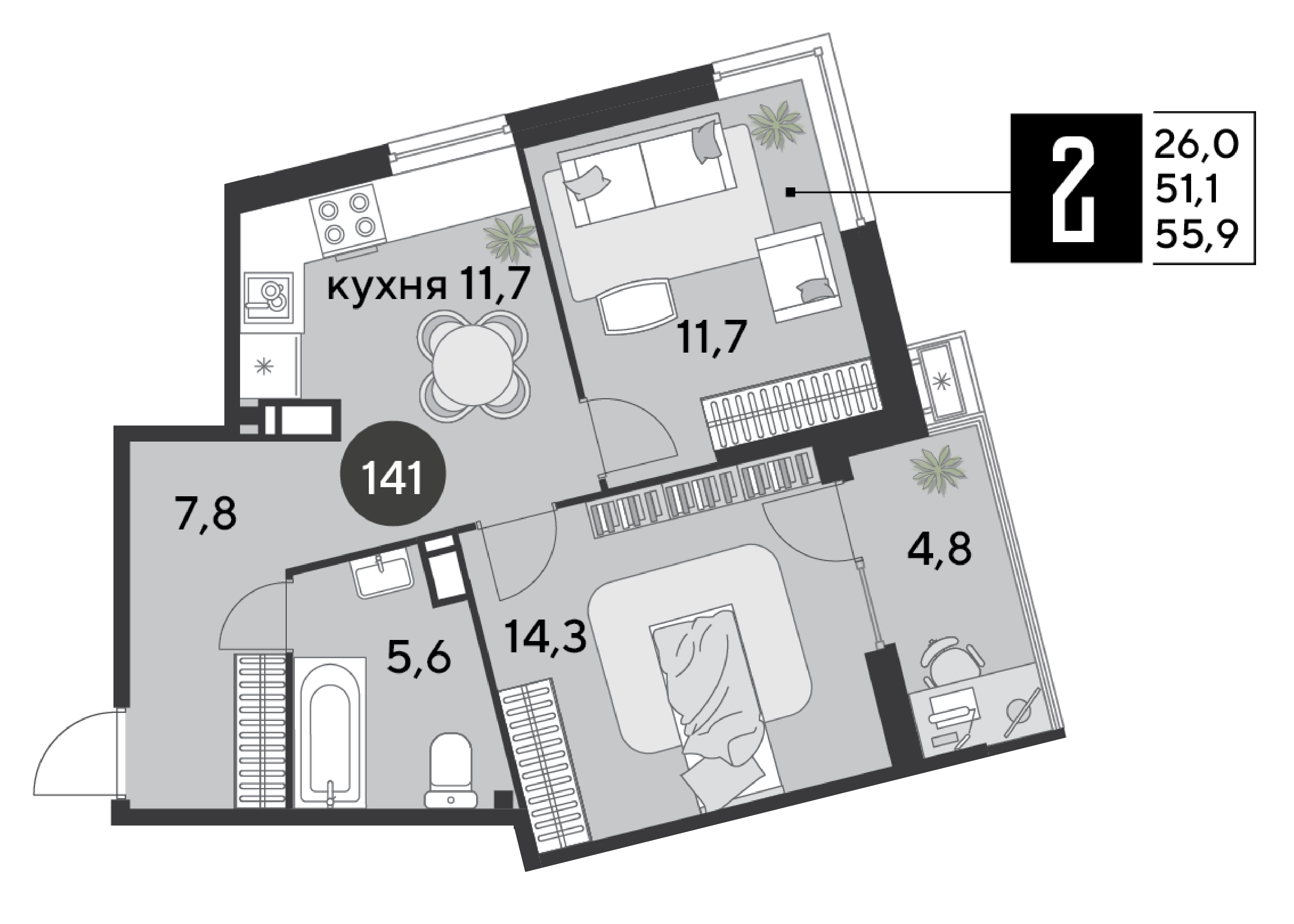 | Площадь, кв.м. | 56 |