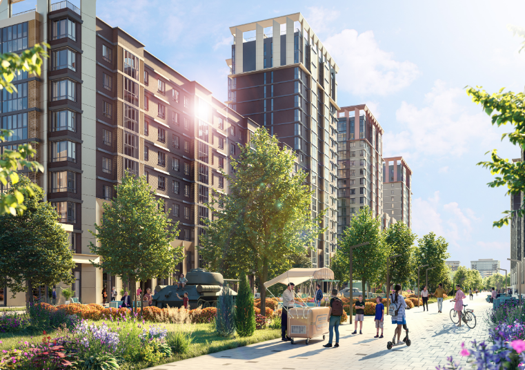 Центром притяжения микрорайона является зелёный пешеходный бульвар, где приятно находиться в любое время.