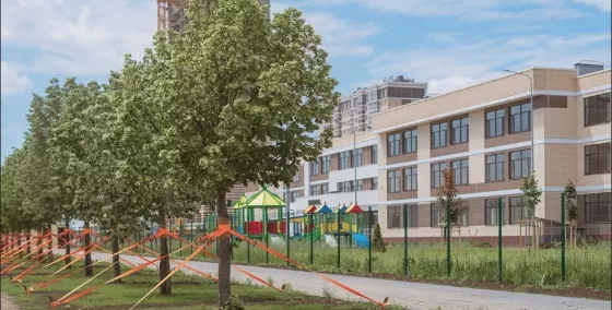 Семейный микрорайон с развитой инфраструктурой: школа, детские сады, поликлиника, детские и спортивные площадки, прогулочные аллеи, остановки общественного транспорта, различные магазины и аптеки — всё в шаговой доступности.