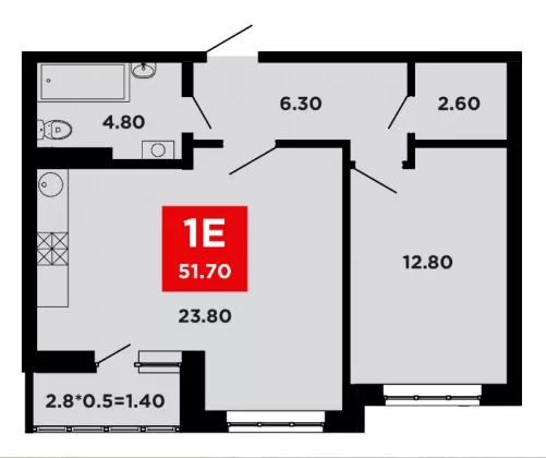 Продается однокомнатная новостройка, 51.6 кв.м., 1/20 эт