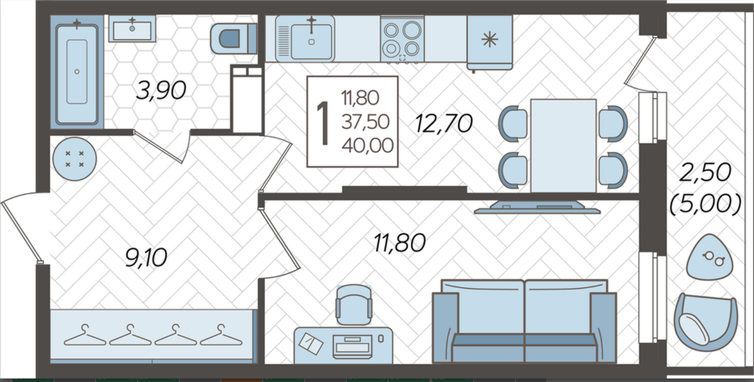 Продается однокомнатная новостройка, 40 кв.м., 11/16 эт