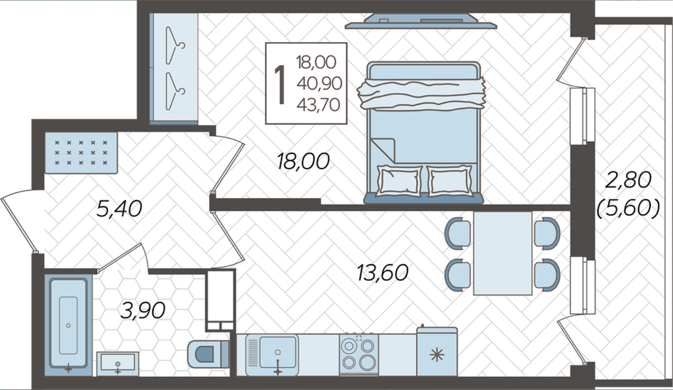 Продается однокомнатная новостройка, 43.7 кв.м., 8/16 эт