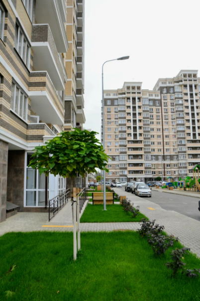 Семейный микрорайон с развитой инфраструктурой: школа, детские сады, поликлиника, детские и спортивные площадки, прогулочные аллеи, остановки общественного транспорта, различные магазины и аптеки — всё в шаговой доступности.