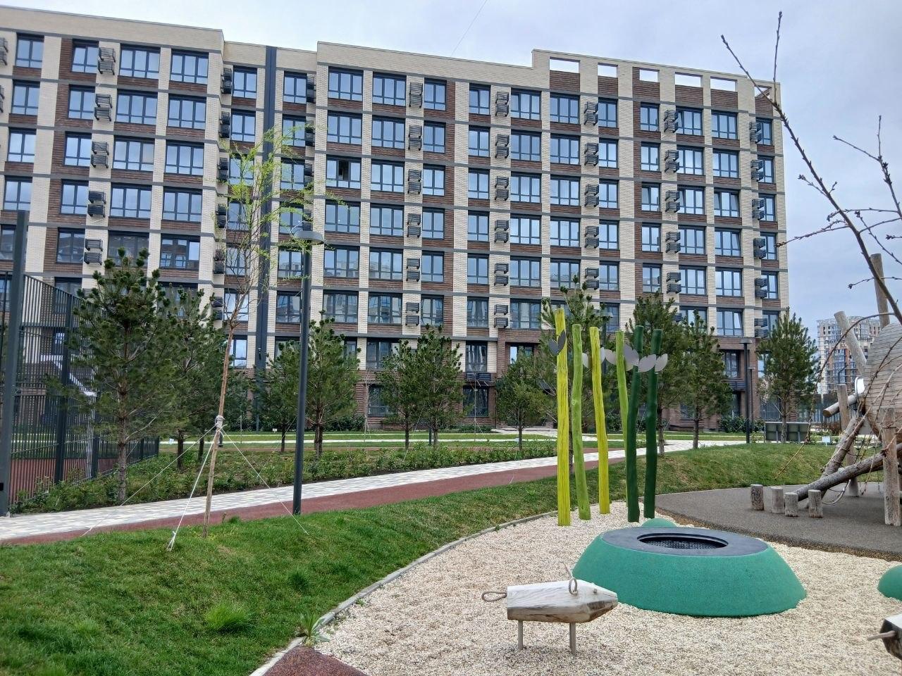 Закрытая территория, двор без машин, детские и спортивные площадки, зоны отдыха, прогулочные аллеи, фонтан, зоны коворкинга, безбарьерная среда, свой детский сад с бассейном.