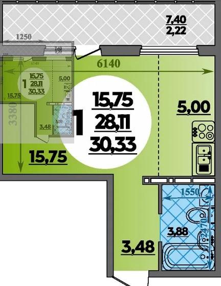 Продается Студия новостройка, 30.33 кв.м., 10/16 эт