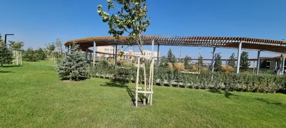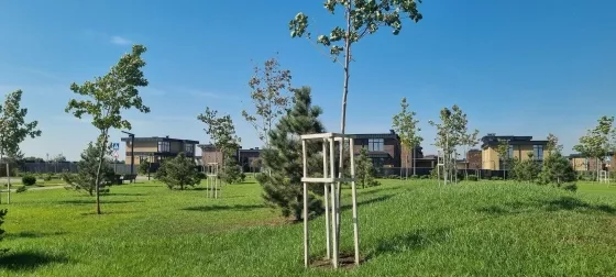 В поселке уже построен сквер для прогулок и детские городки. Будет озеро с ресторанами и магазинами.