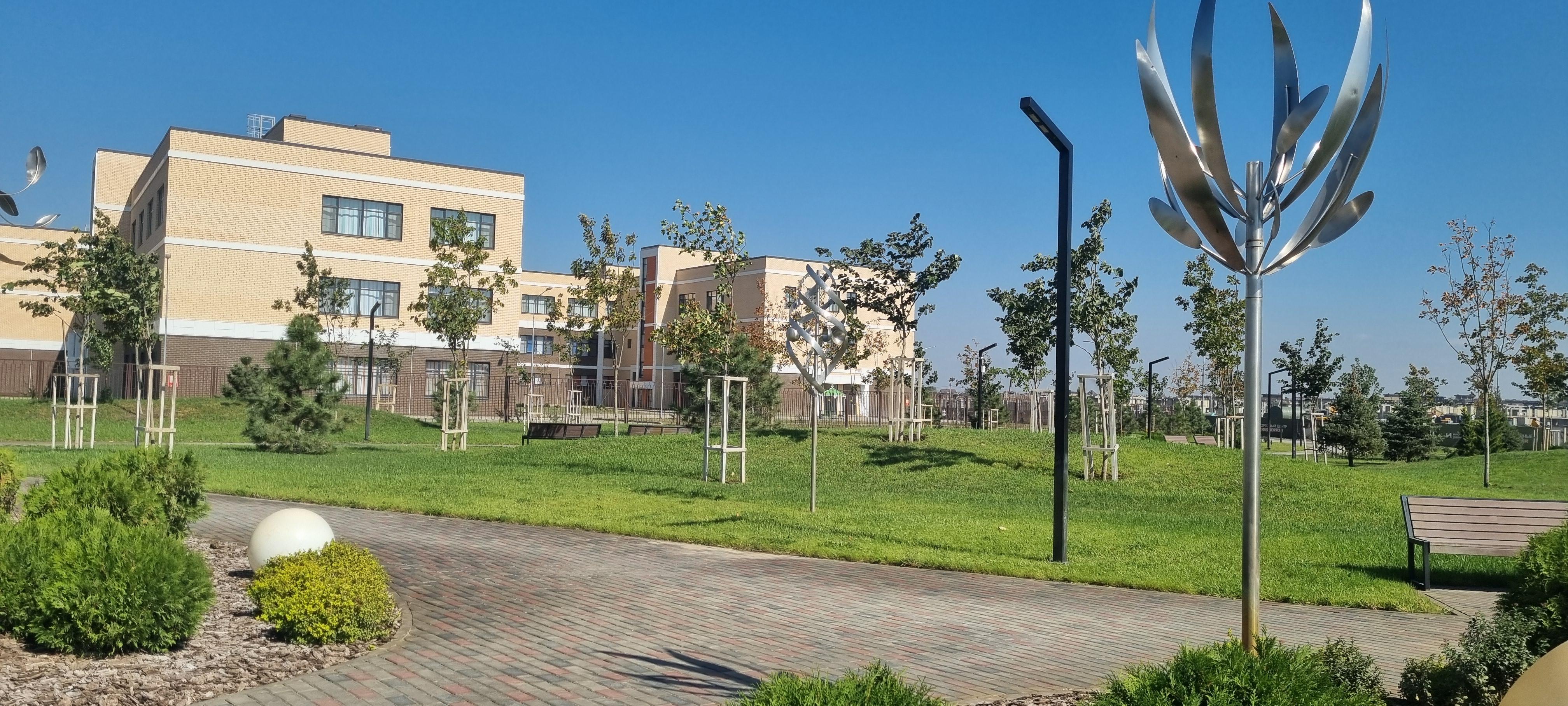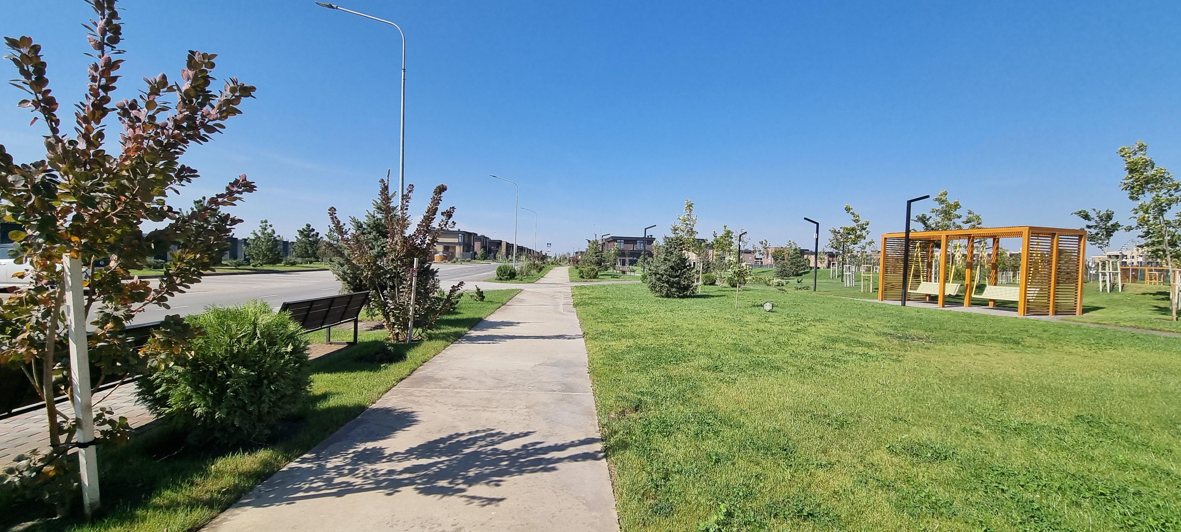 В поселке уже построен сквер для прогулок и детские городки. Будет озеро с ресторанами и магазинами.