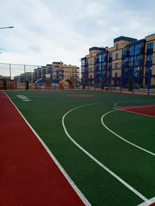 Парковая зона с озеленением " 4 сезона", зоны релакса и спорта, безопасные детские площадки, фитнес- центр, свой торговый центр!