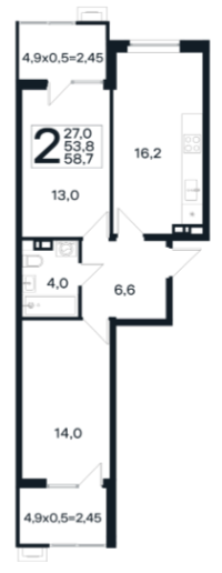 Продается 2-х комн. новостройка, 58.7 кв.м., 4/4 эт