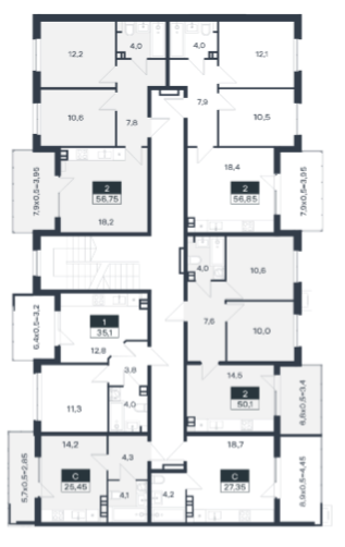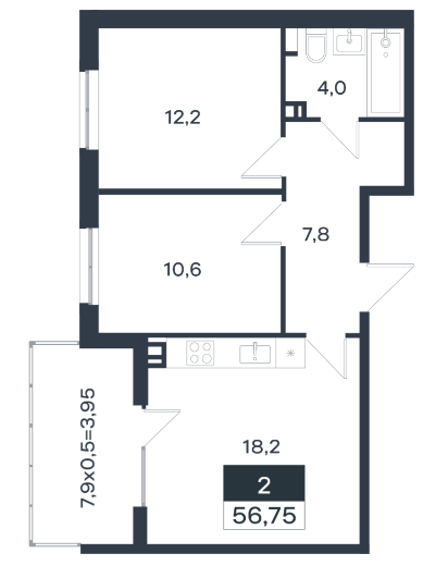 Продается 2-х комн. новостройка, 56.75 кв.м., 4/4 эт