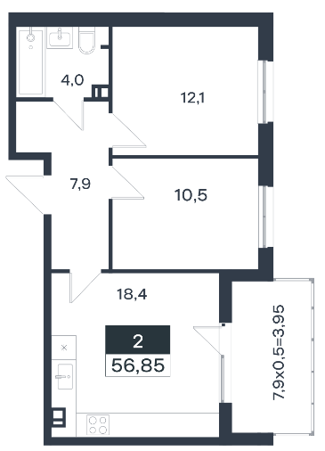 | Площадь, кв.м. | 56.85 |