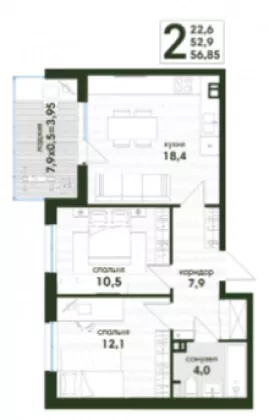 | Площадь, кв.м. | 56.85 |