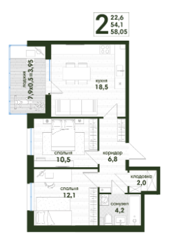 Продается 2-х комн. новостройка, 58.05 кв.м., 1/4 эт