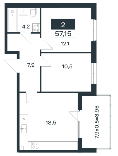 Площадь, кв.м.57.15