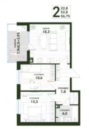 Продается 2-х комн. новостройка, 56.75 кв.м., 4/4 эт