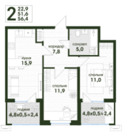 | Площадь, кв.м. | 56.4 |