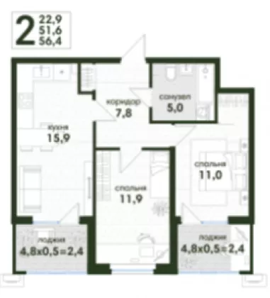 | Жилая площадь | 22.9 |