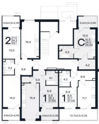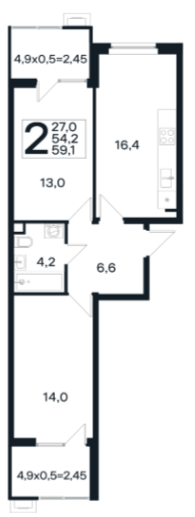 Продается 2-х комн. новостройка, 59.1 кв.м., 1/4 эт