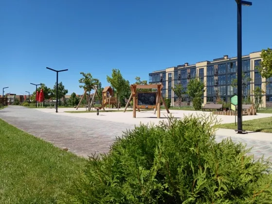 Многоквартирные и индивидуальные дома, муниципальная школа и детский сад, собственные парк с ландшафтным многоуровневым дизайном, озеленением «4 сезона» и собственное озеро с видовым рестораном, зоны для спорта и отдыха, детские площадки, единые центры коммерческой торговли- всё в шаговой доступности!