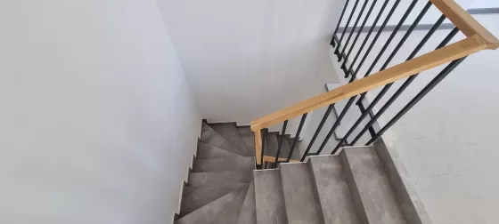 Потолки 2,8 метра. Хорошая входная дверь. Парковочные места на 2 машины перед домом.