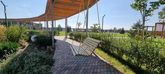 Коттеджный поселок охраняемая территория, видео наблюдение. Парк для прогулок с зонами отдыха, детскими площадками и зонами спорта.