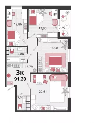 | Комнат в квартире | 3 |