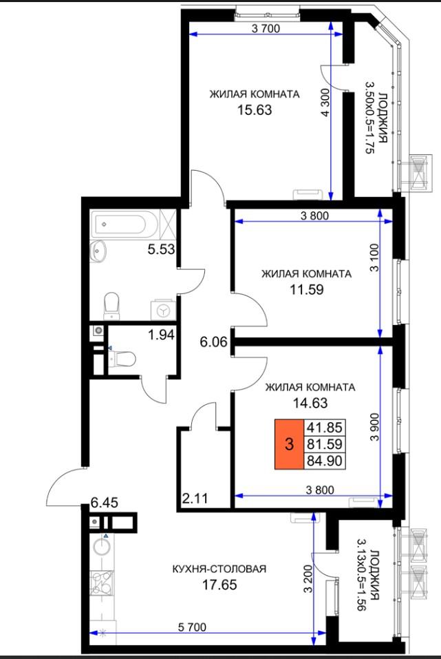 Продается 3-х комн. новостройка, 84.9 кв.м., 15/18 эт