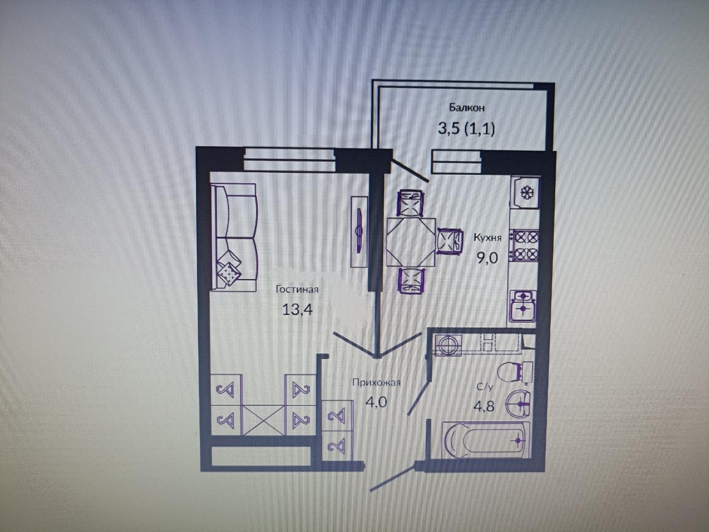 Продается 1к квартира с прекрасной планировкой в самом лучшем районе города, в 10 минутах от парка Краснодар.