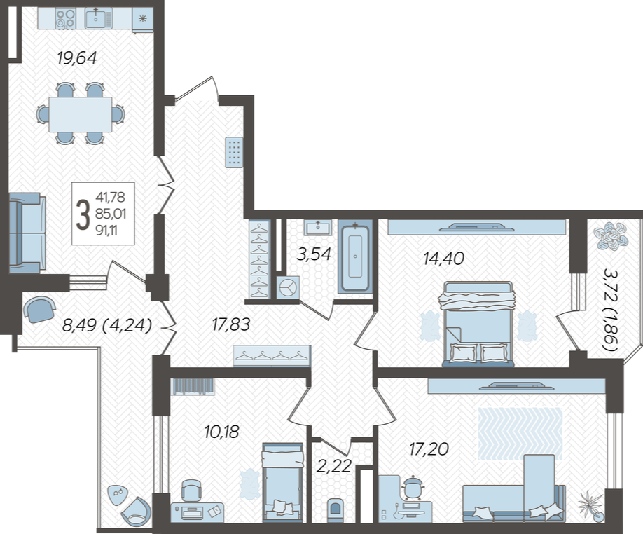 | Площадь, кв.м. | 91.29 |