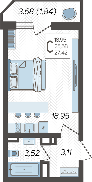Продается Студия новостройка, 27.42 кв.м., 21/23 эт