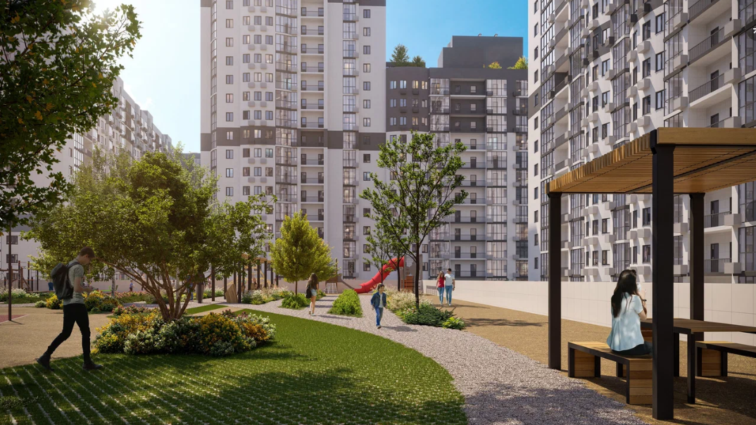 Высоко развитая инфраструктура - школы, детские сады, поликлиники, торговые центры, парковые зоны - все в шаговой доступности.
