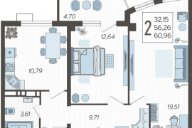 Продается 2-х комн. новостройка, 60.96 кв.м., 10/21 эт