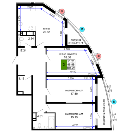 Продается 3-х комн. новостройка, 104.28 кв.м., 12/24 эт