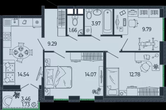 В избранное трехкомнатная квартира