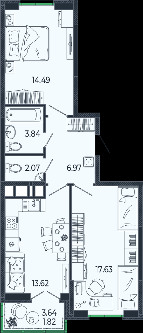 В избранное двухкомнатная квартира