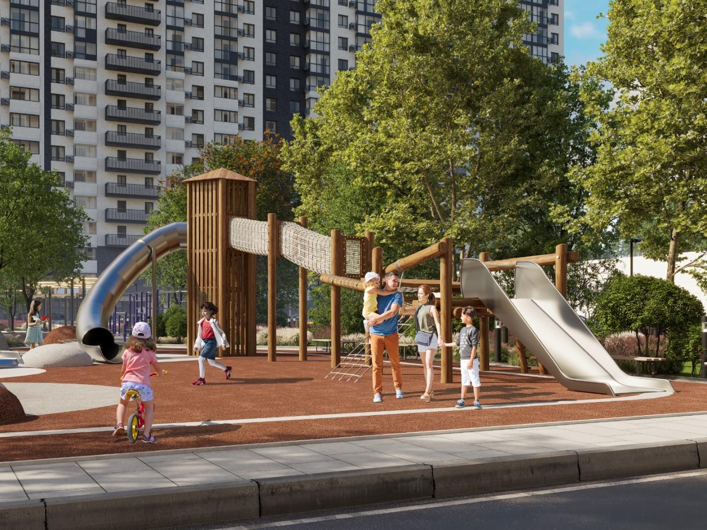 Закрытая территория без машин с огромной зеленой зоной, детскими и спортивными площадками, стилобат!