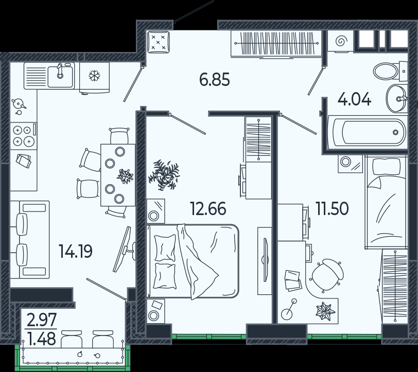 Продается 2-х комн. новостройка, 54 кв.м., 11/21 эт
