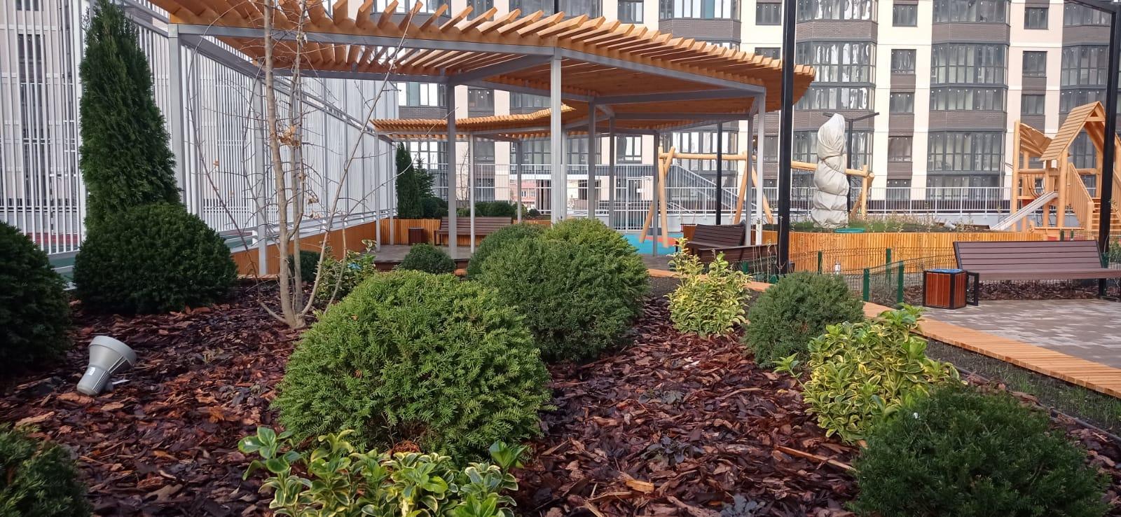 Шикарный стилобат с фонтаном, мангальными зонами, детскими и спортивными площадками, прогулочный бульвар с зонами для прогулок и отдыха!