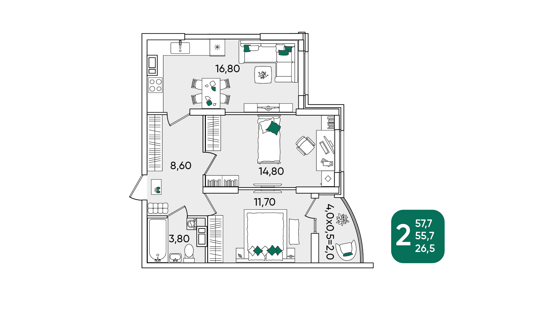 Продается 2-х комн. новостройка, 60 кв.м., 11/24 эт