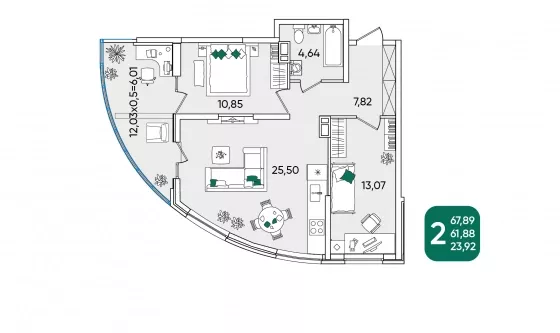 Планировка с кухней-гостиной 25кв метра и большой 13 квадратов лоджией.! -