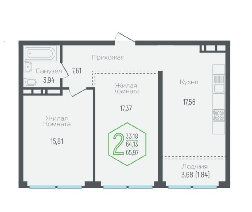 Продается 2-х комн. новостройка, 68 кв.м., 6/24 эт