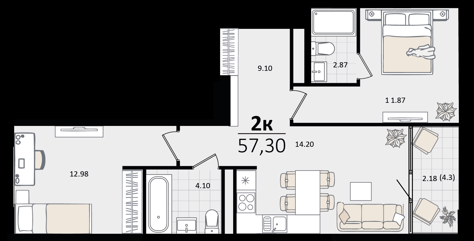 Продается 2-х комн. новостройка, 60 кв.м., 2/6 эт