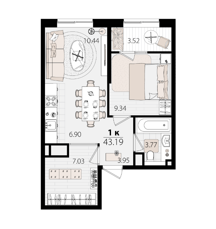 Продается однокомнатная новостройка, 44 кв.м., 8/9 эт