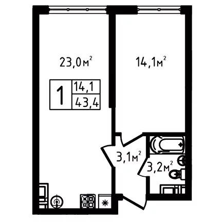 Продается однокомнатная новостройка, 44 кв.м., 4/9 эт