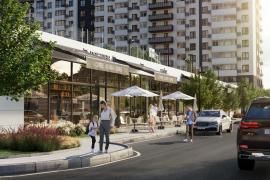 С внешней стороны комплекса коммерция с ресторанами, магазинами, салонами красоты и многим другим!