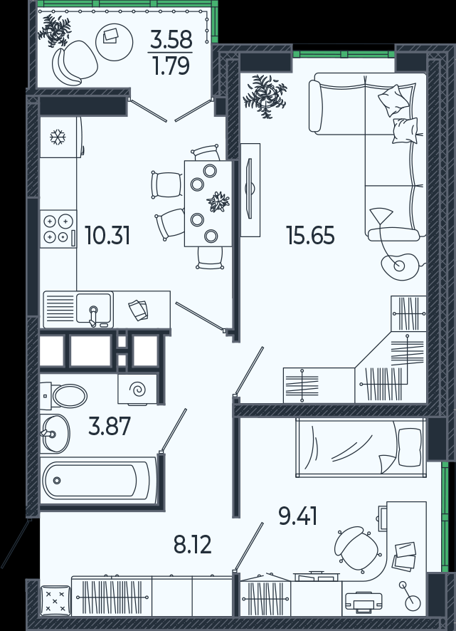 В избранное двухкомнатная квартира