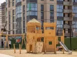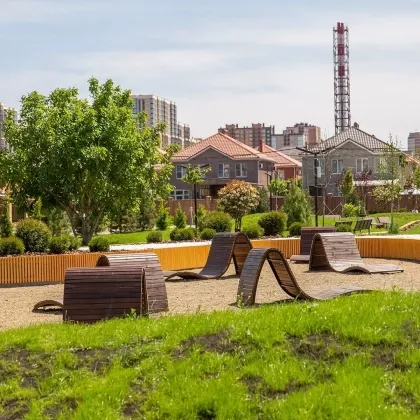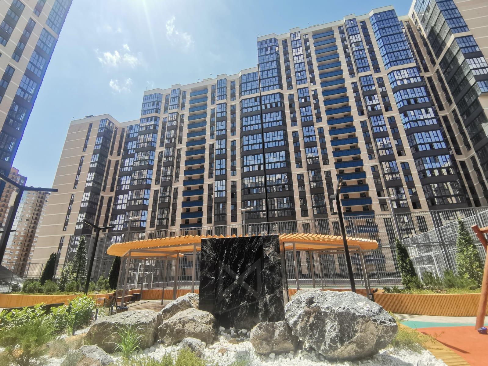 Шикарный стилобат с фонтаном, мангальными зонами, детскими и спортивными площадками, прогулочный бульвар с зонами для прогулок и отдыха.