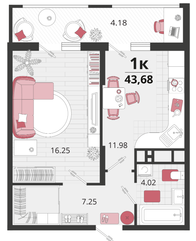 Однокомнатная квартира в современном микрорайоне по типу город в городе.